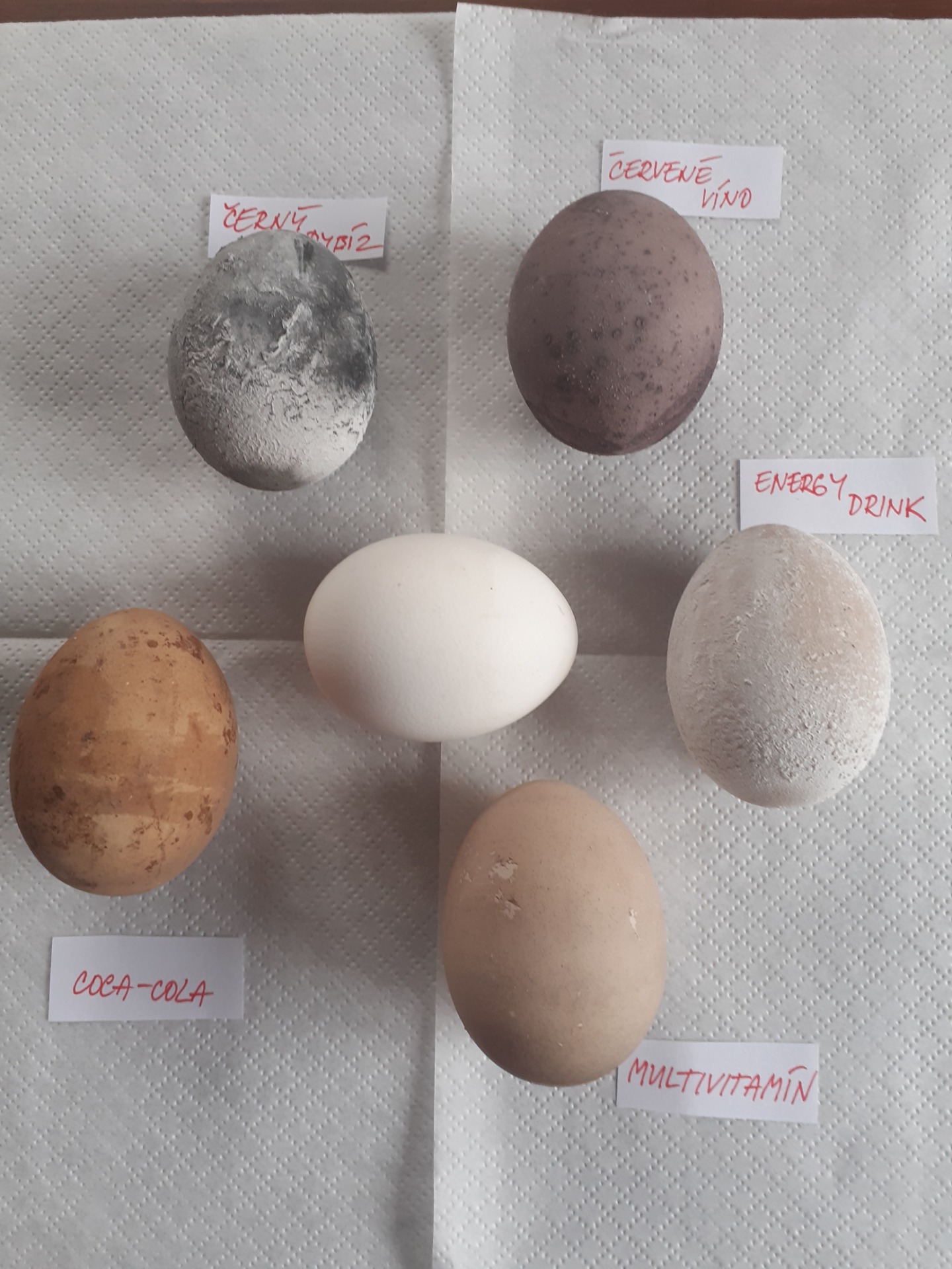 - vejce v různých nápojích: